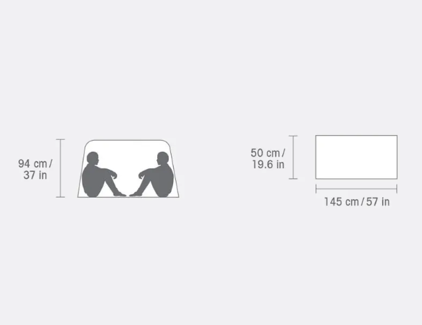 - Size when setup: 37" (94 cm) Height x 57" (145 cm) Length x 19.6" (50 cm) Width