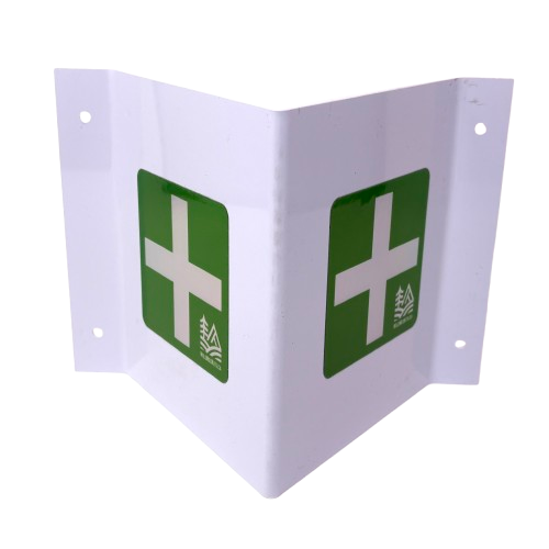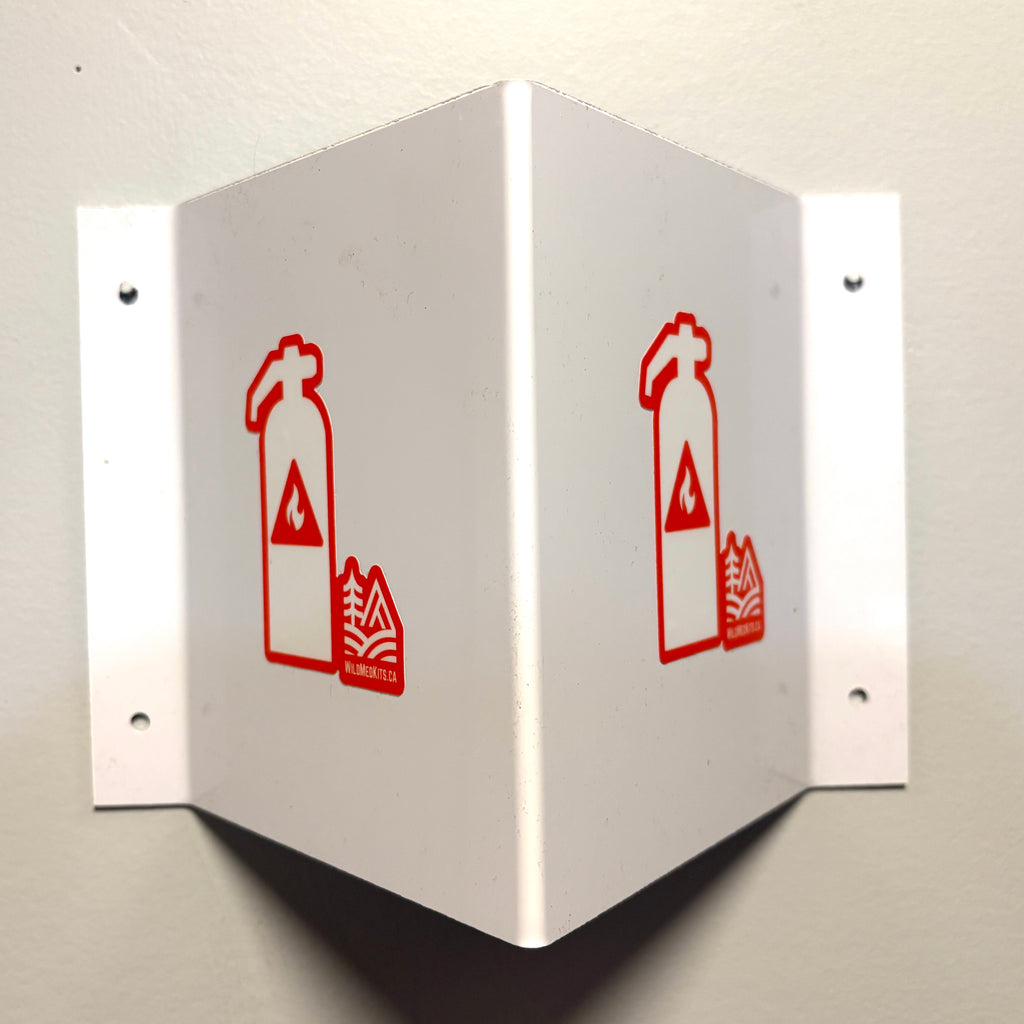 The three way wall sign easily identifies of employees and public the location of safety equipment in your building. Can be easily attached to and wall type with included 3M double sided mounting strips or with screws (not included).