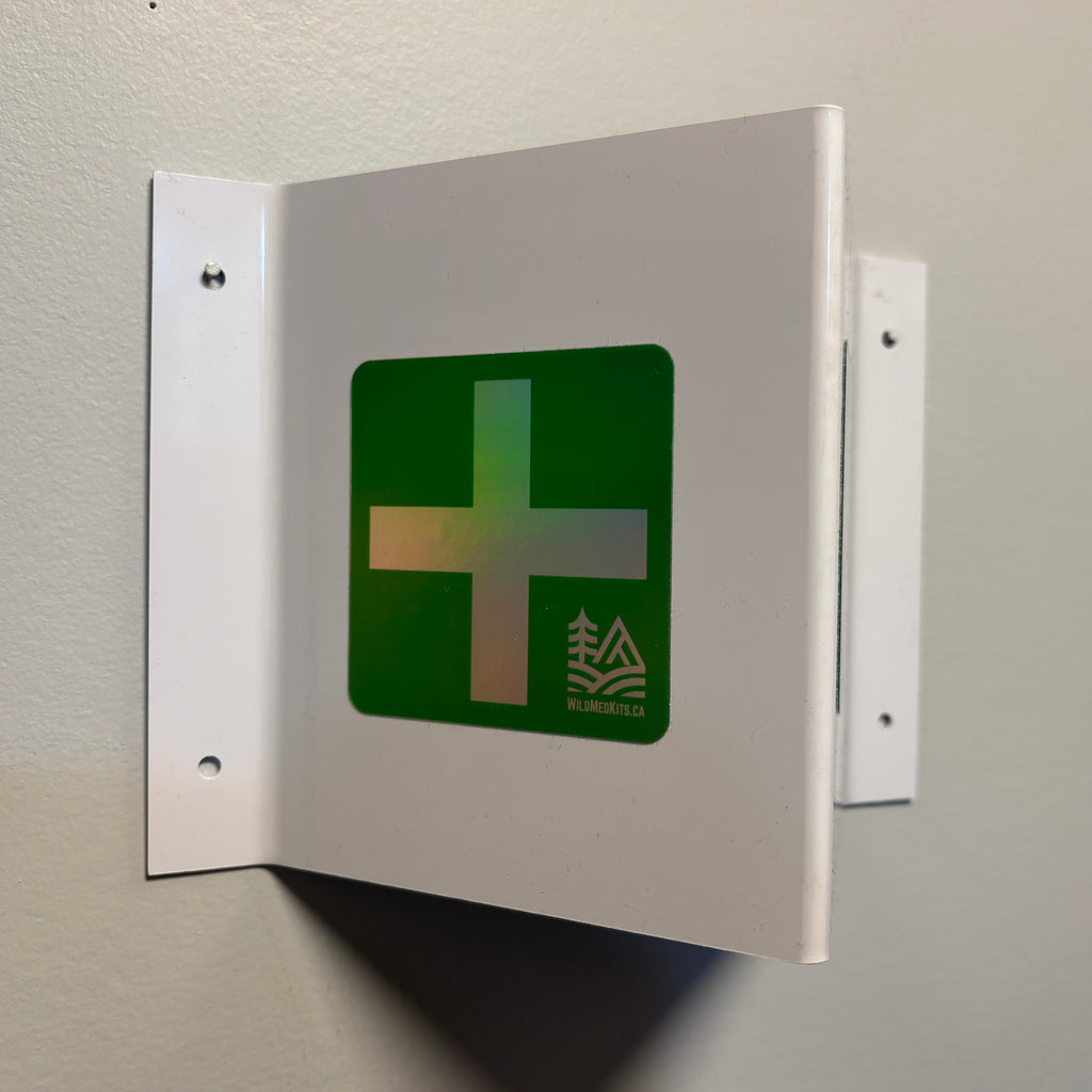 3-Way Projecting Wall Safety Sign: AED, Fire, First Aid Kit